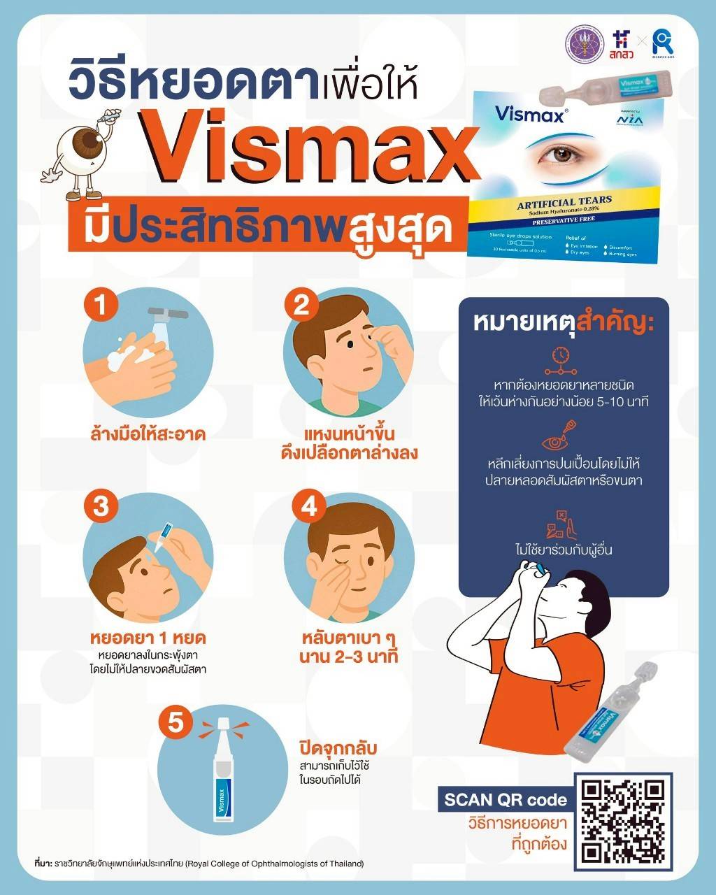 ปัจจุบันมียาที่ได้รับการอนุมัติสูตรตำรับโดยสำนักงานคณะกรรมการอาหารและยาที่พร้อมกระจายสู่ประชาชน ได้แก่ วิสแม็กซ์ (Vismax) ซึ่งเป็นยาที่ใช้ในการรักษาภาวะตาแห้ง